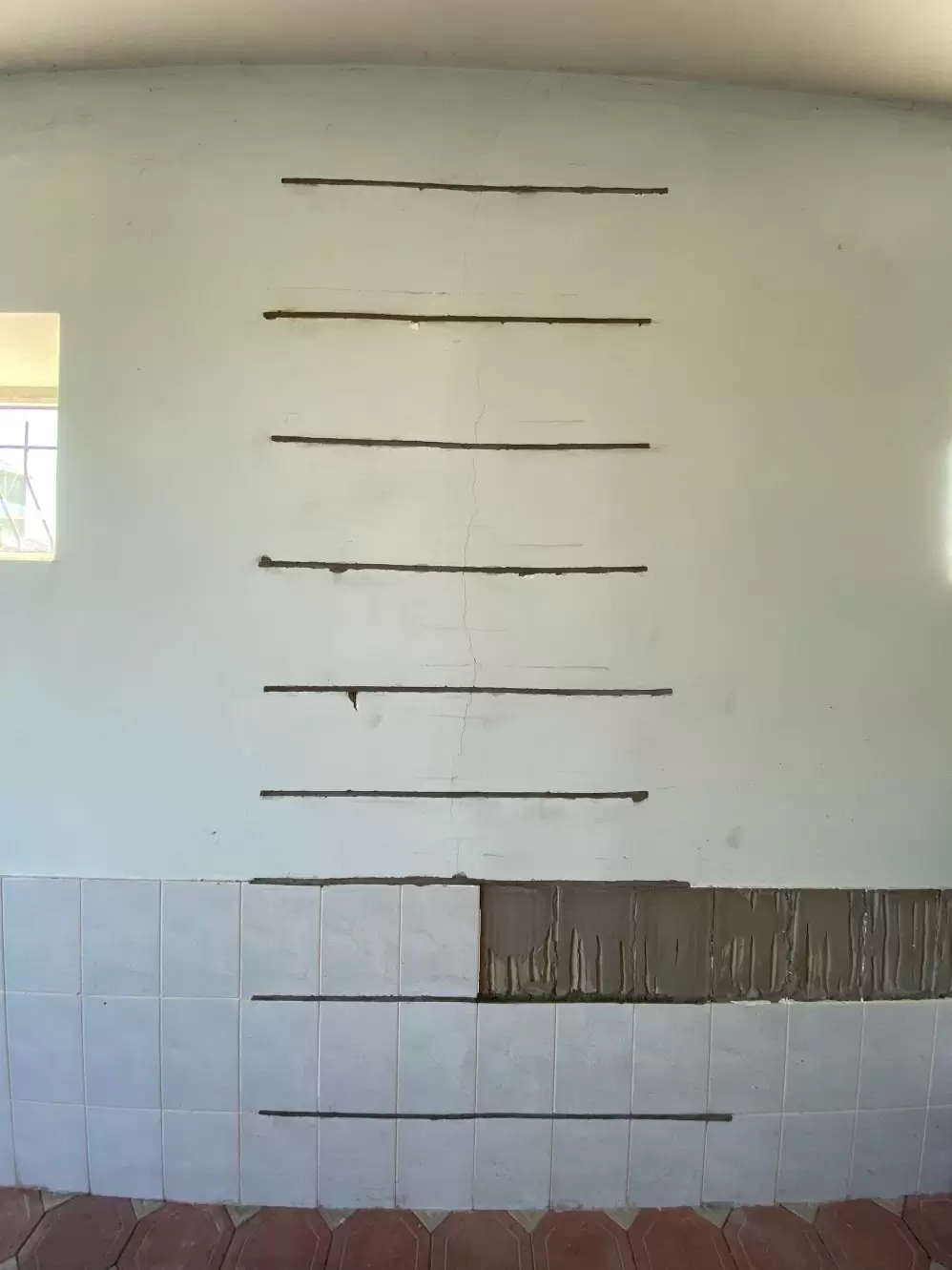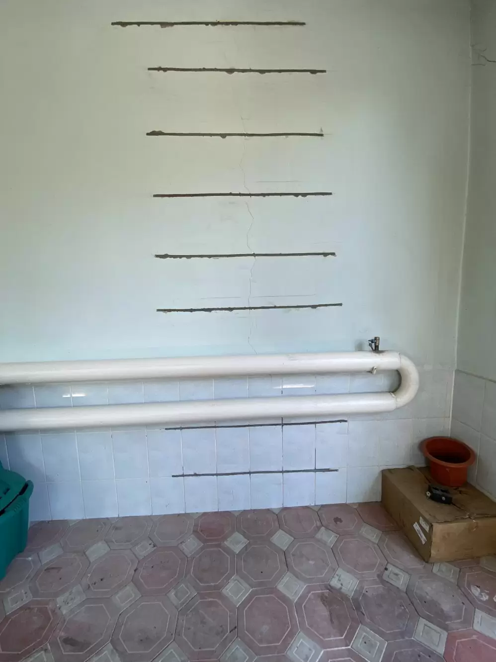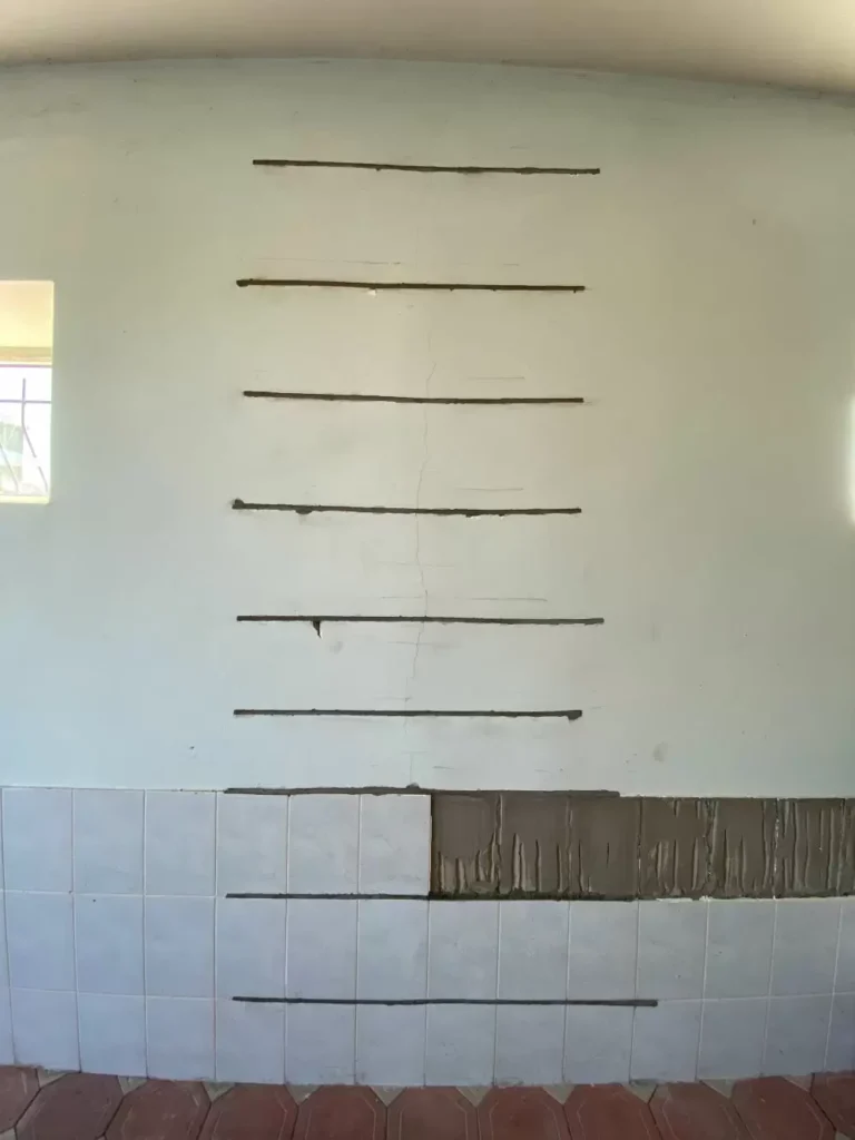 The work took 10 calendar days to complete. Soil stabilization was carried out using GEORESIN technology at the base of the existing foundations. Cracks were repaired by strengthening the walls, with 175.2 m of prestressed Stati-Bar reinforcement and 58.7 m of Stati-Tie chemical anchors installed. 12-14 mm x 60 mm slots were cut outside the building, with a total length of 160 m.