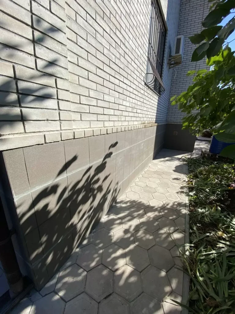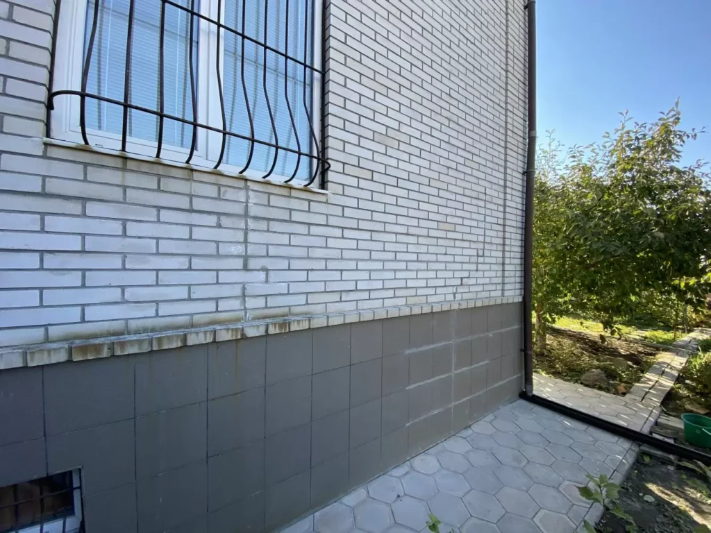 - External load-bearing walls – brick walls with a three-layer construction, with a total thickness of 430 mm. 250 mm of brick, a 60 mm cavity, and a 120 mm finishing brick.
