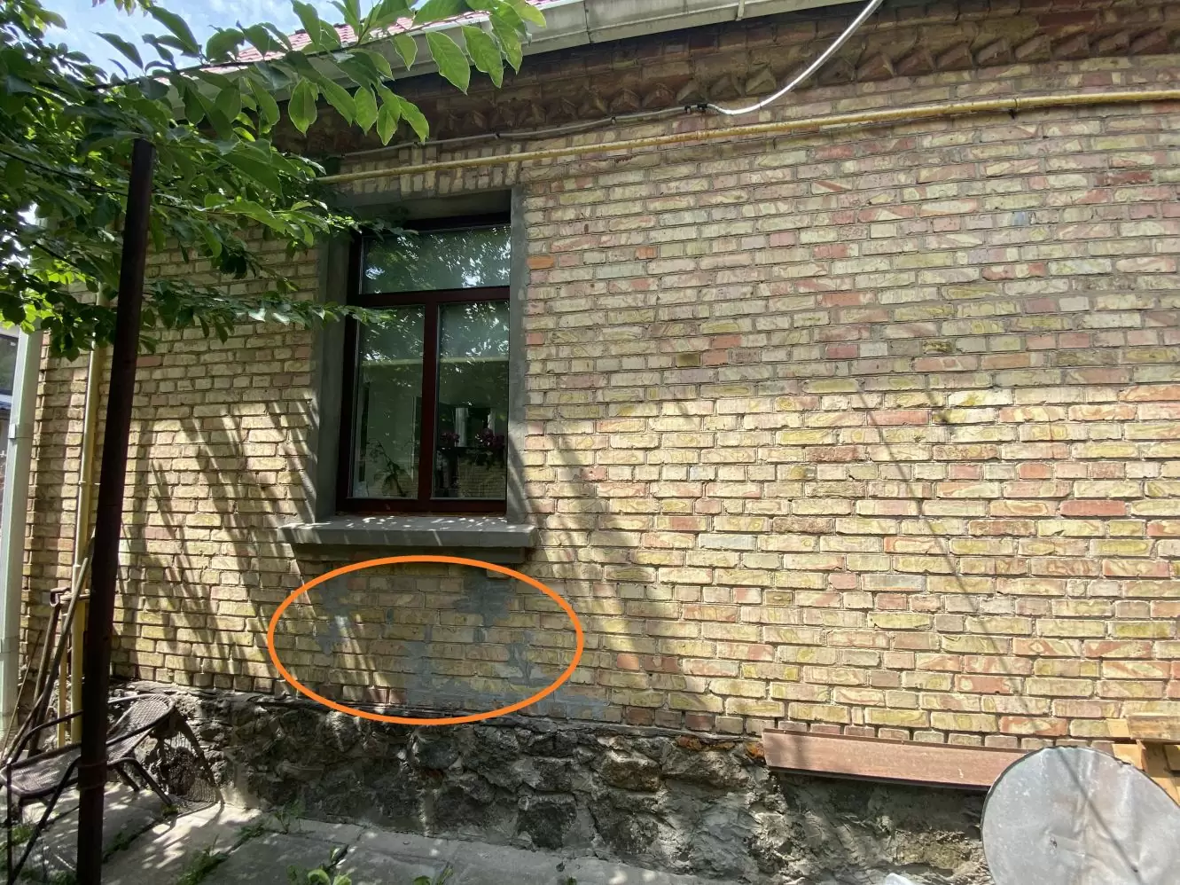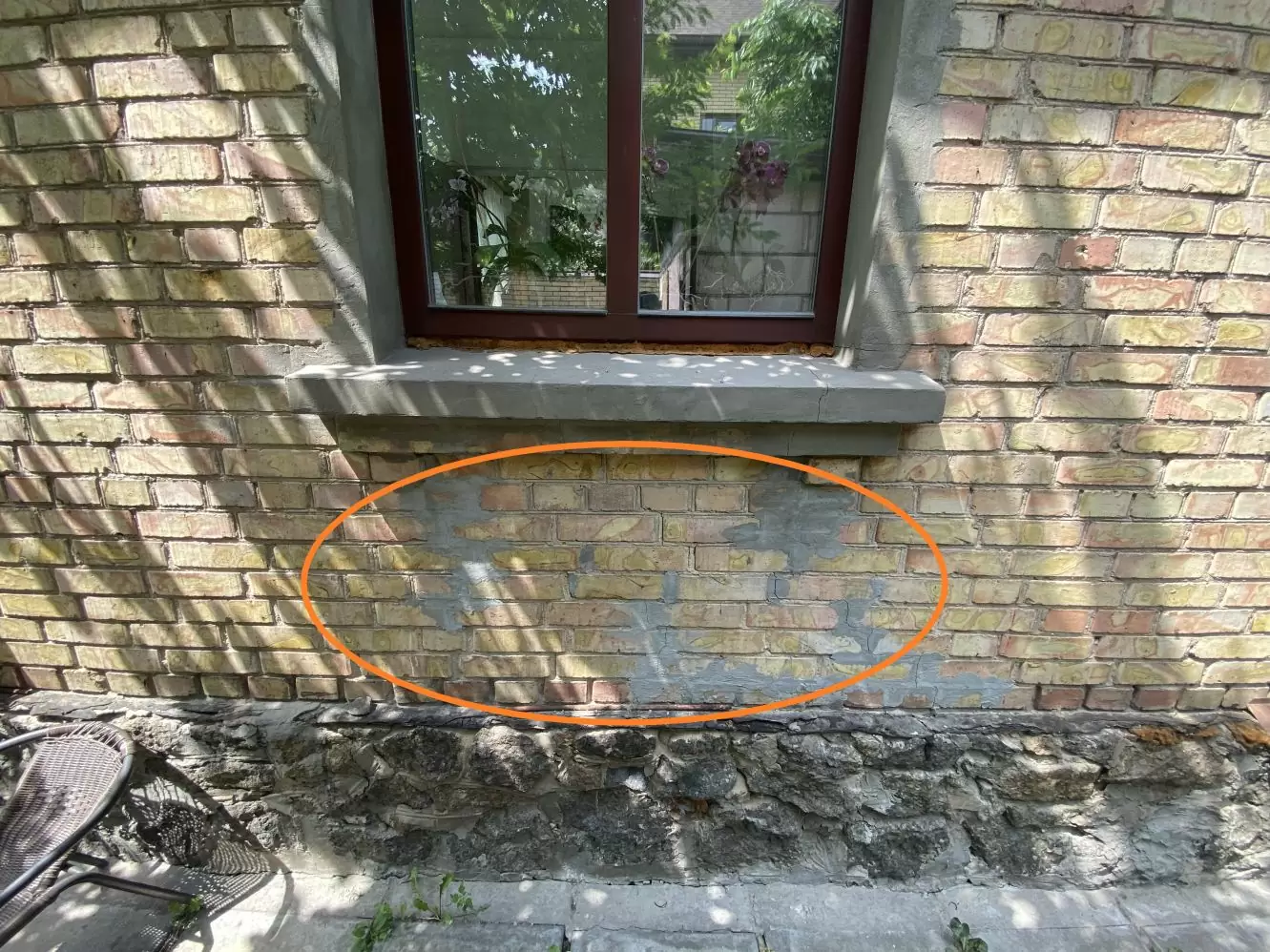 - Товщина стін 400 мм.: цегла 240 мм., міжстінний простір заповнено граншлаком 40 мм., зовнішня облицювальна цегла 120 мм.