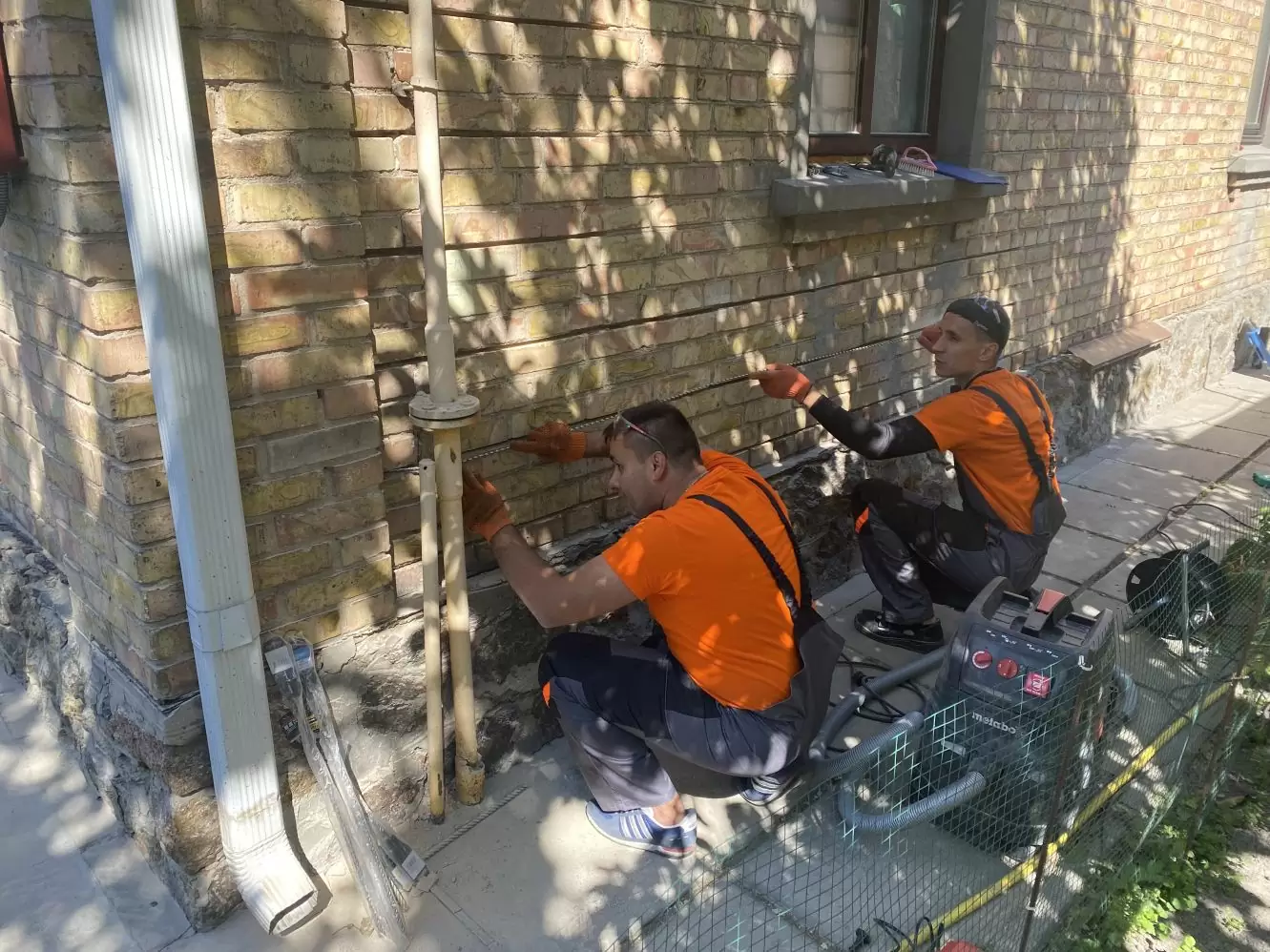 Роботи були виконані протягом трьох календарних днів. Згідно з проектом спеціалістами ТОВ «Статичні Системи» було змонтовано 34 пог. м. попередньо напруженої арматури діаметром 8 мм. за технологією Stati-BAR, що дозволило зміцнити цілісність будівлі. Також було встановлено за технологією Stati-TIE 40 шт. анкерів із попередньо напруженої арматури діаметром 10 мм., що у свою чергу призвело до відновлення з’єднання між фасадною та основною стіною.