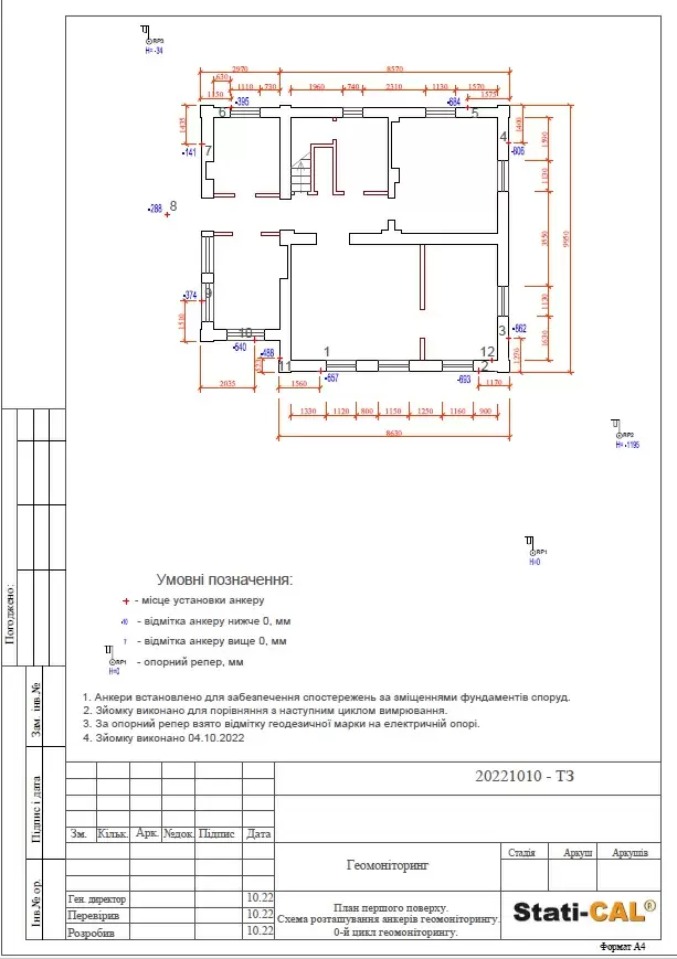 Протягом 30 днів спеціалістами ТОВ «Статичні Системи» було виконано роботи з геодезії, необхідних для дотримання гарантійних зобов’язань, – зафіксовано положення будинку у горизонті. Було підготовлено та передано власнику будинку звіт з геодезії.