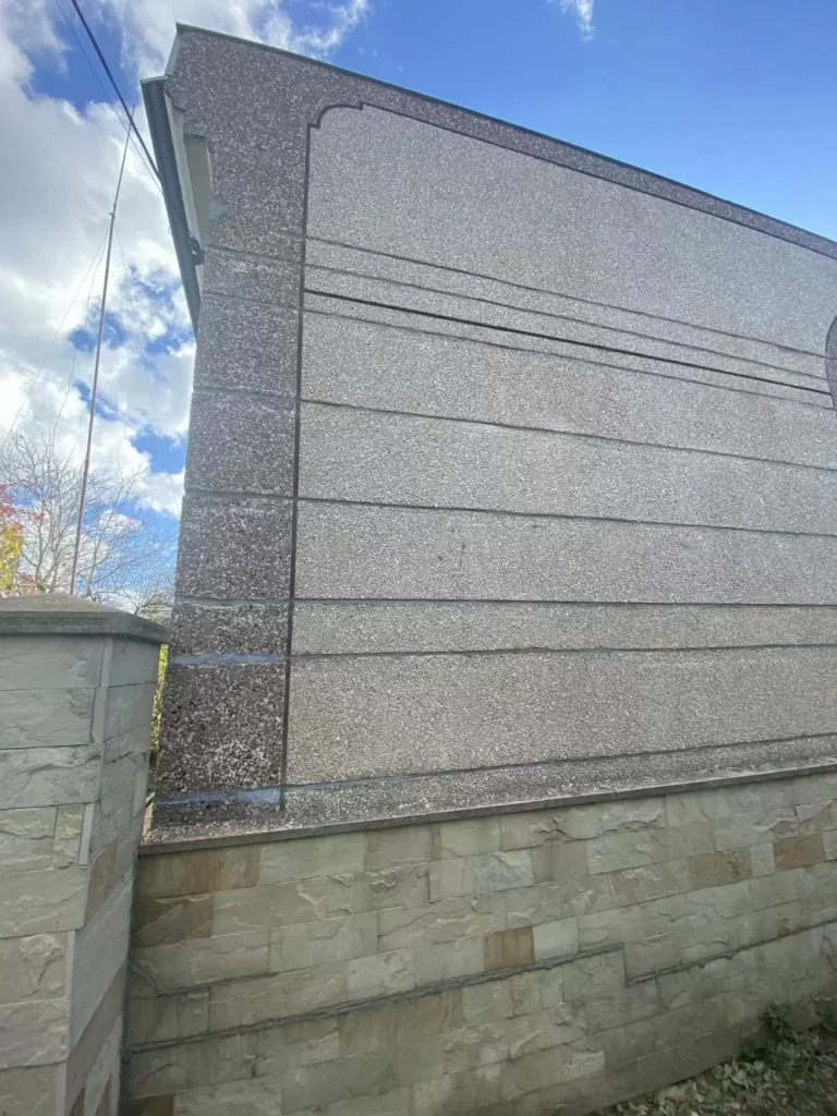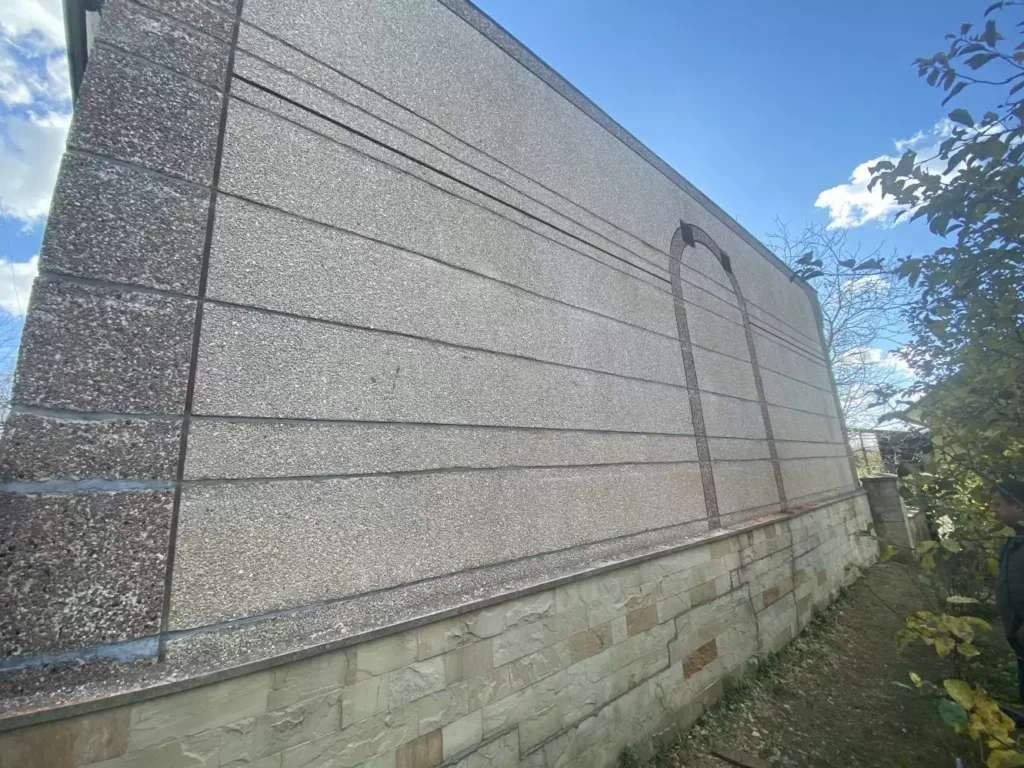 - Цегляні стіни товщиною 480 мм., відштукатурені, оздоблені крихтою.