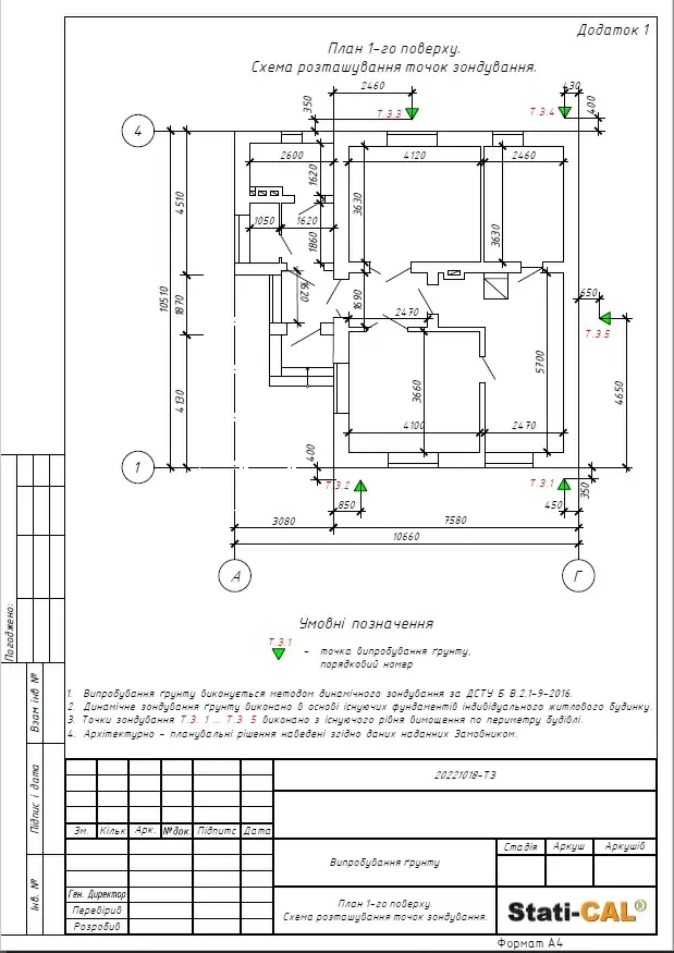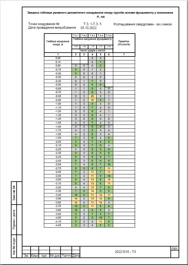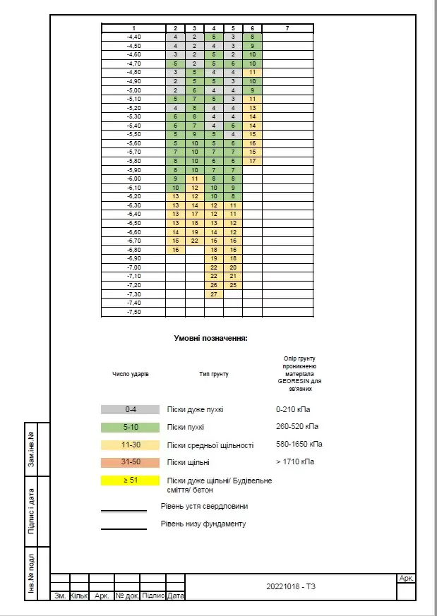 Методом динамічного зондування фахівцями ТОВ «Статичні Системи» був обстежений ґрунт під фундаментом, який показав неоднорідність, різну щільність ґрунту, що сприяло нерівномірному просіданню фундаменту.
