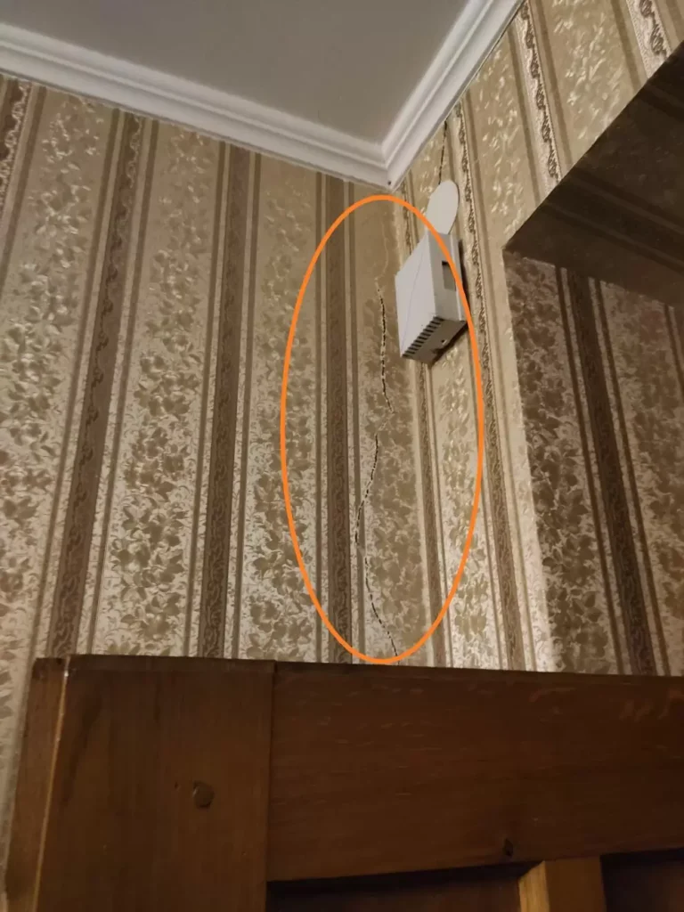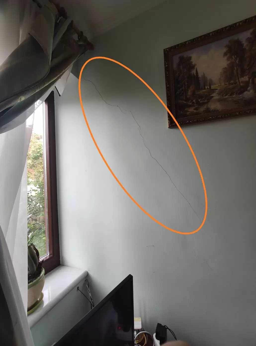 Через великий перепад висот фундаменту, його закладання вище за відмітку промерзання ґрунту, а також відсутність вимощення з боку задньої стіни, було помічено його нерівномірне просідання, що призвело до появи значної кількості тріщин усередині будинку та на фундаменті.
