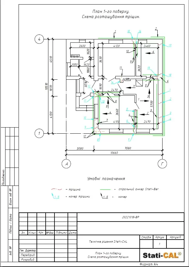 У результаті обстеження та огляду будинку інженером було розроблено проект виконання робіт за технологією Stati-CAL, прорахована вартість робіт. Комерційна пропозиція була погоджена з домовласником, було заплановано початок виконання робіт.