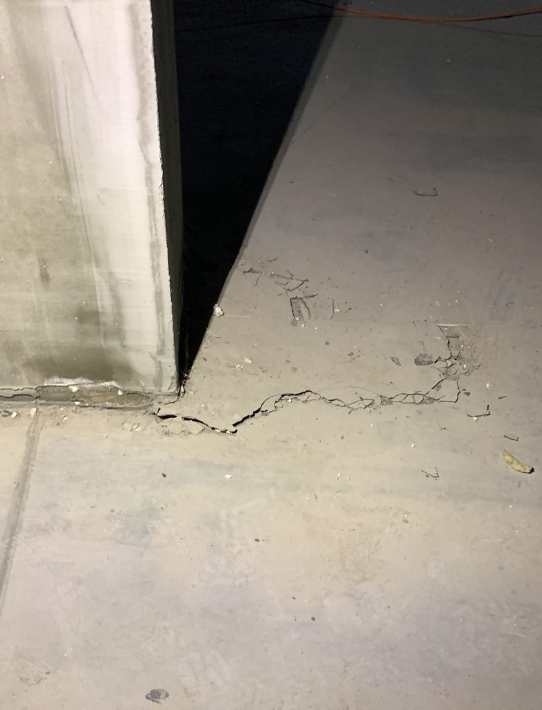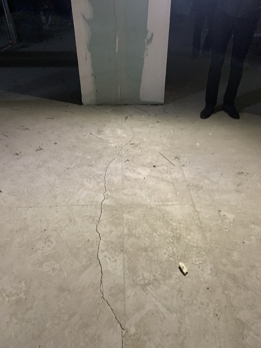 Аудит і ознайомлення з об’єктом було виконано в лютому 2024 року, було виявлено та зафіксовано значну кількість тріщин у залізобетонній плиті підлоги та нерівномірне просідання плити підлоги до 60–80 мм від проєктного значення. Також під час огляду адміністративно-офісної будівлі в частині будівлі першого поверху зафіксовано тріщини в опорних стінах і залізобетонних елементах каркаса будівлі. Це свідчить про нерівномірне просідання фундаменту будівлі, а саме недостатньо щільну основу (ґрунт) під фундаментом.