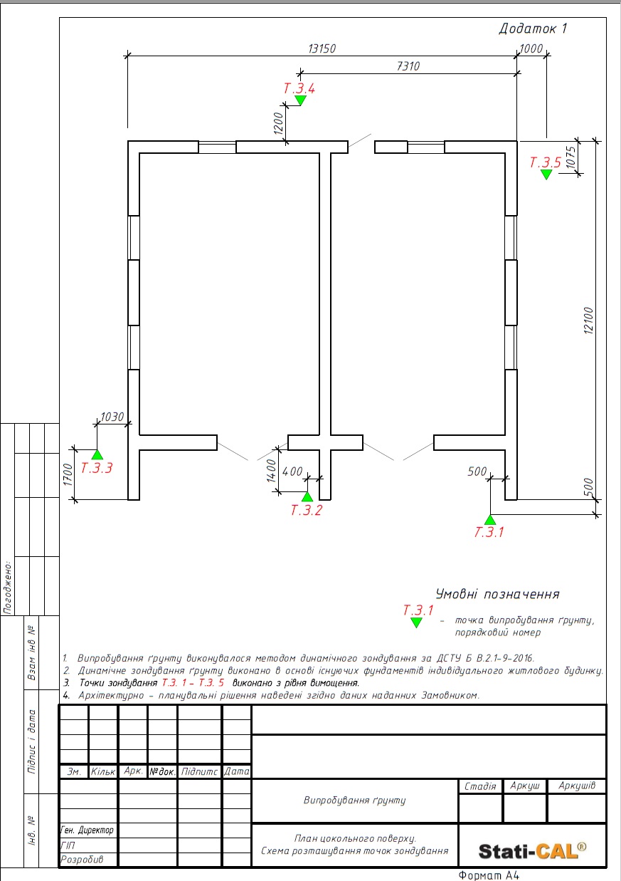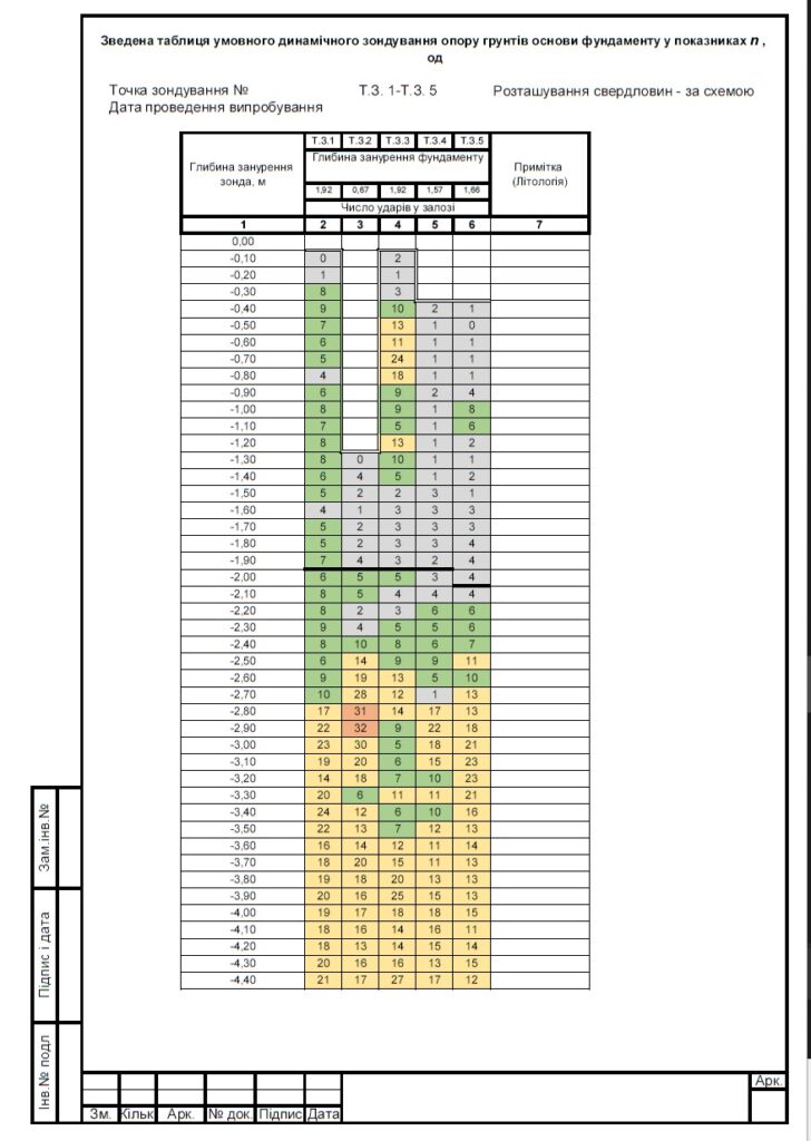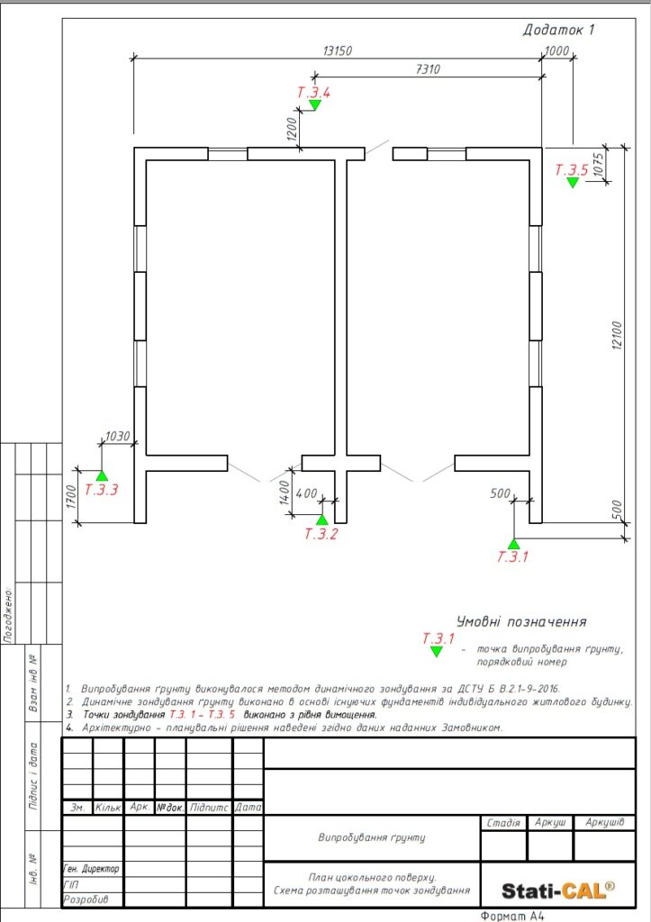 На первом этапе наши специалисты провели тщательное исследование грунтов под фундаментом, используя метод динамического зондирования. Аудит объекта включал в себя измерения размеров дома и фиксацию состояния на фото. Выявлено, что основной причиной появления трещин является неоднородность грунтов и их недостаточная плотность, что привело к неравномерной осадке дома.