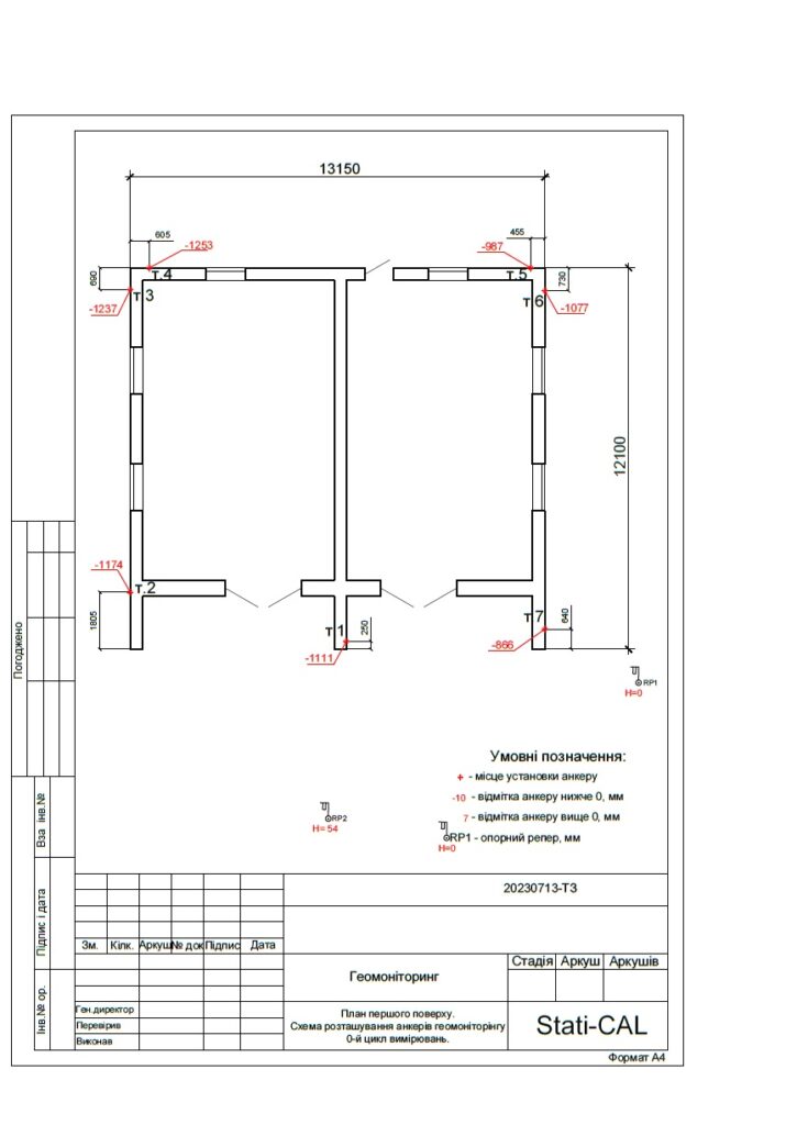 Также нами было решено провести геодезический мониторинг в течение 30 дней, что является ключевым для выполнения гарантийных обязательств. Результаты мониторинга, позволяющие следить за стабильностью дома по горизонтали, были оформлены в виде отчета и переданы владельцу дома.